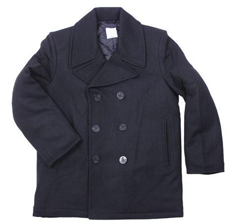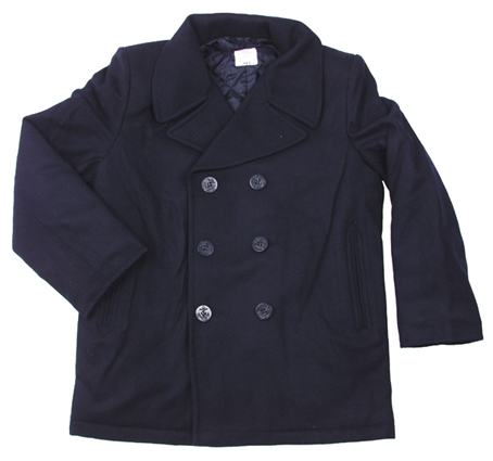 Der klassische US Marine Pea Coat, 2 grosse Schubtaschen und 1 Innentasche, doppelte Knopfreihe, PVC-Knöpfe mit Ankeremblem, Obermaterial: 70 % Wolle, 30 % Viskose